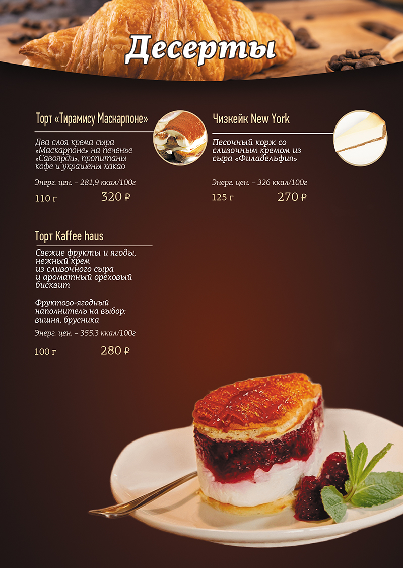 Десерты, торты, панна-котта, пирожные, круассаны, выпечка