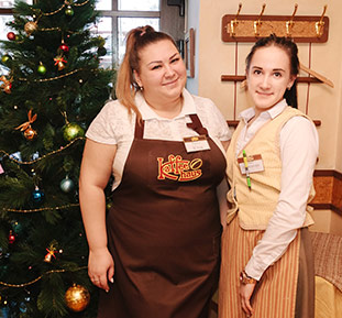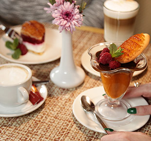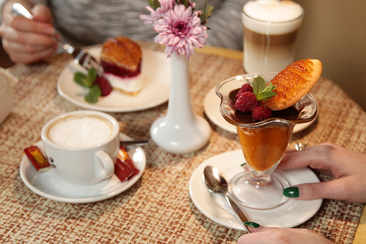 Приятное заведение. Маленькие столики на двоих, три небольших зала, стилизованные под старину. Официантки в костюмах, очень вежливые. Мы зашли попить кофе с вкусняшками. Хороший выбор напитков и сладостей, кофе разный, есть с ликерами.